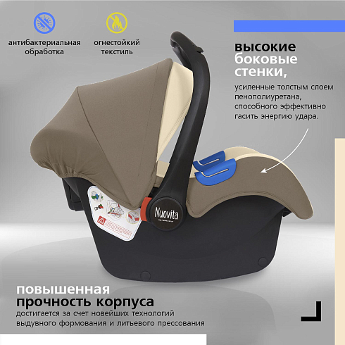Детское автокресло Nuovita Maczione N0-1 — респектабельная, стильная и легкая автолюлька-переноска, которая сочетает безопасность, эргономику и эстетику. Корпус изготовлен методом литьевого прессования, не имеет швов и является очень прочным. В автолюльке малыш будет находиться в лежачем положении, сможет полноценно выспаться и ему будет уютно даже в долгом путешествии. Это детское автокресло от 0 до года — лучший вариант для перевозки новорожденного. Максимальный вес ребенка — 13кг (группа 0+).
