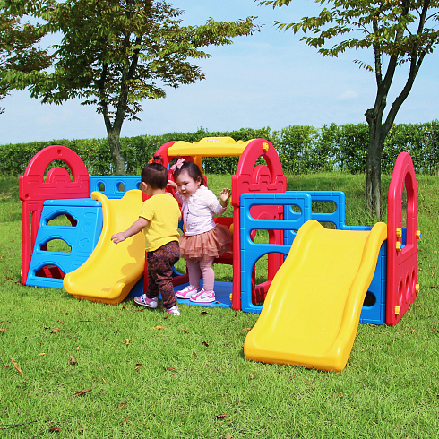 • Можно установить детские горки и качели по отдельности. Для сборки не требуется специальных знаний (элементы крепятся на пластиковых винтах).