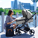 В числе немаловажных деталей — возможность установки блоков по ходу и против хода движения, телескопическая перекидная родительская ручка, оптимальный размер колесной базы и наличие в комплекте москитной сетки и плаща-дождевика.