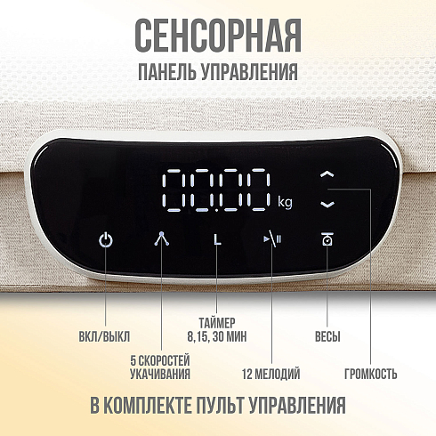 12 встроенных мелодий с регулировкой громкости создают успокаивающую атмосферу. А благодаря функции Bluetooth вы можете включать любимые песни с телефона. Управление происходит через сенсорную панель или пульт дистанционного управления, что делает процесс максимально удобным.