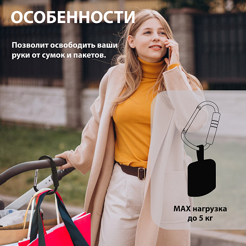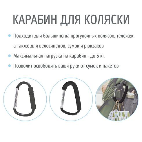 Карабин для коляски Fattivo - аксессуар, который подходит к любой коляске и легко крепится на ручке при помощи механизма- карабина. Изделие выполнено из прочных и качественных материалов: металла и пластика. Прорезиненная ручка предотвращается скольжение карабина на ручке.