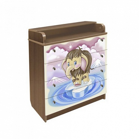 Комод Vlana с трансформируемой крышкой «Слоненок» КДП 80/4-10 - пеленальный,  изготовлен из качественной фурнитуры и материалов – ЛДСП и МДФ, что дает пользователю долгий срок службы изделия. Комод снабжен пеленальной поверхностью с бортиками, что предостережет малыша от случайного падения. Снабжен он 4-мя вместительными ящиками,  которые предназначены для одежды, аксессуаров, игрушек ребенка и всего того, что может пригодиться при пеленании малыша. Комод безопасный - без острых углов. Фасады изделия декорированы привлекательными изображениями, которые наносятся при помощи метода УФ-печати. Модель прекрасно впишется в интерьер любой детской комнаты. Ящики с бесшумным и плавным открытием и закрытием, которые оценят родители в процессе использования, ведь тишина это залог крепкого сна ребенка.