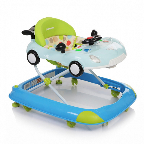 Ходунки Baby Care Stratus – это легкие и компактные ходунки с сиденьем в виде машинки, с игровой музыкальной панелью, в которых малыш может сидеть и играть или делать первые шаги. На устойчивом основании расположены 8 силиконовых колес, которые не царапают пол и не гремят, которые при желании можно застопорить. Ходунки можно использовать с полугода до полутора лет, и высота сиденья регулируется под рост малыша в трех положениях. Сиденье мягкое, его текстильную обивку можно снять и постирать.