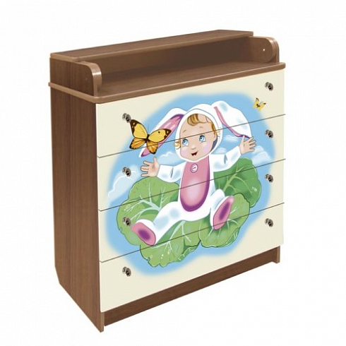 Комод Vlana с трансформируемой крышкой «Капуста» КМА (КМП) 80/4-35  - пеленальный,  изготовлен из качественной фурнитуры и материалов – ЛДСП и МДФ, что дает пользователю долгий срок службы изделия. Комод снабжен пеленальной поверхностью с бортиками, что предостережет малыша от случайного падения. Снабжен он 4-мя вместительными ящиками,  которые предназначены для одежды, аксессуаров, игрушек ребенка и всего того, что может пригодиться при пеленании малыша. Комод безопасный - без острых углов. Фасады изделия декорированы привлекательными изображениями, которые наносятся при помощи метода УФ-печати. Модель прекрасно впишется в интерьер любой детской комнаты. Ящики с бесшумным и плавным открытием и закрытием, которые оценят родители в процессе использования, ведь тишина это залог крепкого сна ребенка.