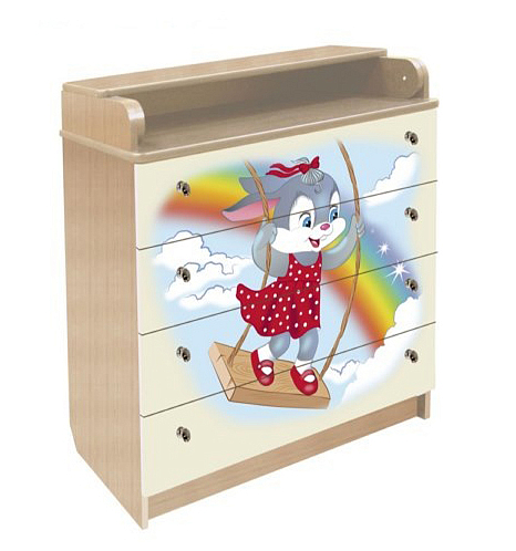 Комод Vlana с трансформируемой крышкой «Зайка» КМА (КМП) - пеленальный,  изготовлен из качественной фурнитуры и материалов –ЛДСП и МДФ, что дает пользователю долгий срок службы изделия. Комод снабжен пеленальной поверхностью с бортиками, что предостережет малыша от случайного падения. Снабжен он 4-мя вместительными ящиками,  которые предназначены для одежды, аксессуаров, игрушек ребенка и всего того, что может пригодиться при пеленании малыша. Комод безопасный - без острых углов. Фасады изделия декорированы привлекательными изображениями, которые наносятся при помощи метода УФ-печати. Модель прекрасно впишется в интерьер любой детской комнаты. Ящики с бесшумным и плавным открытием и закрытием, которые оценят родители в процессе использования, ведь тишина это залог крепкого сна ребенка.