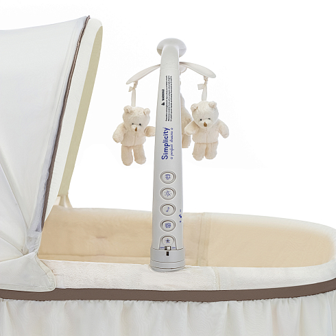 Музыкальный мобиль, который установлен на бортике колыбели, воспроизводит успокаивающие мелодии, а также включает мерцающие огоньки и вращающуюся карусель с плюшевыми игрушками. Дополнительно он может служить и ночником. Отличительной особенностью Simplicity GL4050 Auto является наличие автоматической системы укачивания Auto Gliding на магнитах, которая позволяет успокоить малыша за счет плавного движения люльки. Функция включается нажатием кнопки на кронштейне мобиля, один цикл качания составляет 15 минут. При желании функция автоматического укачивания может быть заблокирована, для этого предусмотрены специальные стопоры.