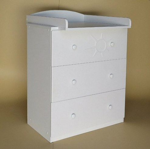 Комод пеленальный «Ля-мур» представляет собой 3 выдвижных ящика на роликовых направляющих и широкую верхнюю поверхность, предназначенную для проведения процедур по уходу за ребенком.