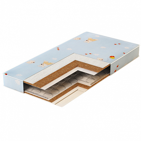 Классический детский матрас на основе блока зависимых пружин Bonnel. В качестве настилочного материала сверху и снизу блока использована жесткая латексированная кокосовая койра. В сочетании с пружинным блоком латексированный кокос дает хороший ортопедический эффект, поскольку равномерно распределяет нагрузку на пружины. С двух сторон матрас смягчен прослойкой из натурального, отлично дышащего хлопкового ватина. Бязевый съемный чехол простеган на холлконе, что добавляет поверхности матраса мягкости и комфорта. Классическое сочетание материалов – вы можете быть уверены в безупречных эксплуатационных качествах этого изделия. Рекомендуется детям от 1 года до 3 лет.