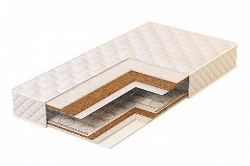 Основа матраса - блок зависимых пружин, покрытый с обеих сторон слоем кокосового волокна.