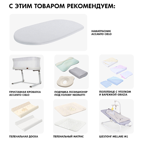 Детский матрас в электронную колыбель Nuovita Accanto Cielo решит вопрос с обустройством его спального места, так как его размеры идеально подходят для данной колыбельки, а его наполнение продумано для комфорта и уюта новорожденного.