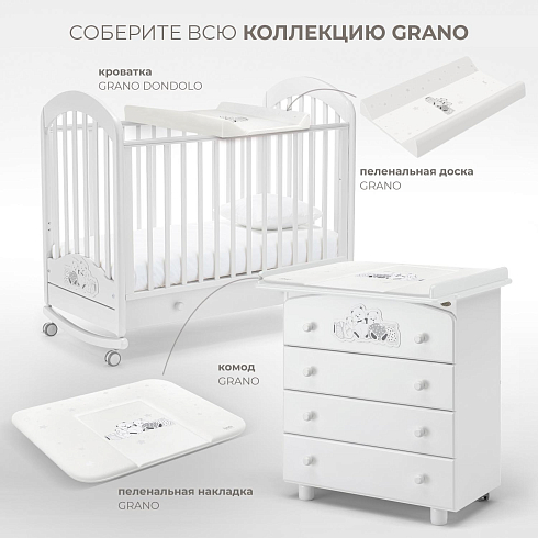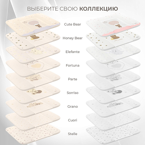 Покупатели могут выбрать матрасик-накладку белого или бежевого цвета. Изделия украшены рисунком, который соответствует одной из коллекций детской мебели Nuovita. Любой из очаровательных принтов, которые являются фирменным знаком бренда, понравится малышу и поможет создать в детской радостное настроение.