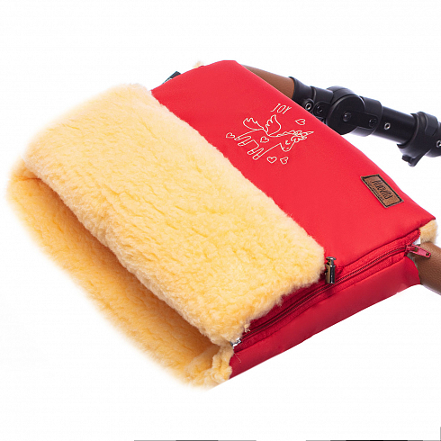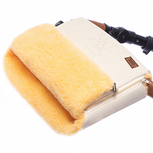 Внутренняя часть муфты изготовлена из пушистого меха, который представляет собой смесовый шерстяной ворс. Высота меха 12 мм, он создает объемную воздушную прослойку, защищая от попадания холода. Шерстяные волокна отлично сохраняют тепло и не допускают перегрева, что позволяет пользоваться муфтой при температуре от 0 до -30 градусов.