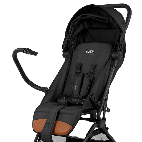 При этом соблюдены все требования безопасности и комфорта, которые выдвигаются к коляске для ребенка: от выпадения и выскальзывания защищает съёмный бампер, удобное положение ног ребенка гарантирует подножка, которая имеет два положения, спинка тоже регулируется (от 115 ° до 175 °). И, разумеется, важным фактором являются ремни безопасности — у Nuovita Note они 5-ти точечные с накладками из мягкого материала.