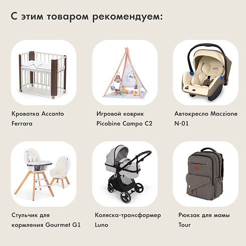 Впрочем, месяц-два, и ребенок начнет все чаще обращать внимание не на комфорт своего положения в шезлонге для новорожденных, а на дугу с занятными игрушками и разнообразные мелодии и звуки, которые электрический шезлонг-качалка Nuovita Cullare CU1 может проигрывать. Высота дуги оптимальна, чтобы мотивировать ребенка тянуться к заинтересовавшим его предметам и стимулировать хватательный рефлекс.